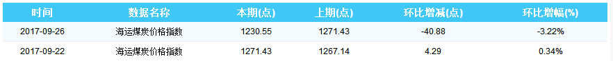 2017年9月26日海运煤炭价格指数