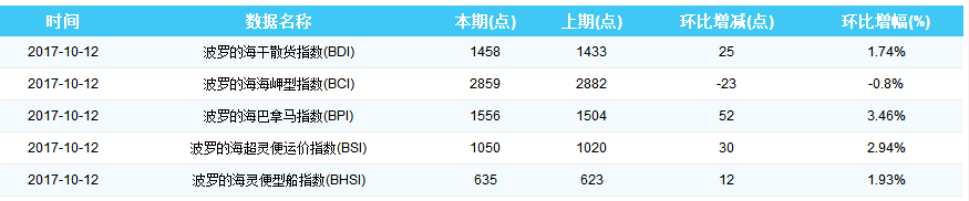 2017年10月12日国际航运指数