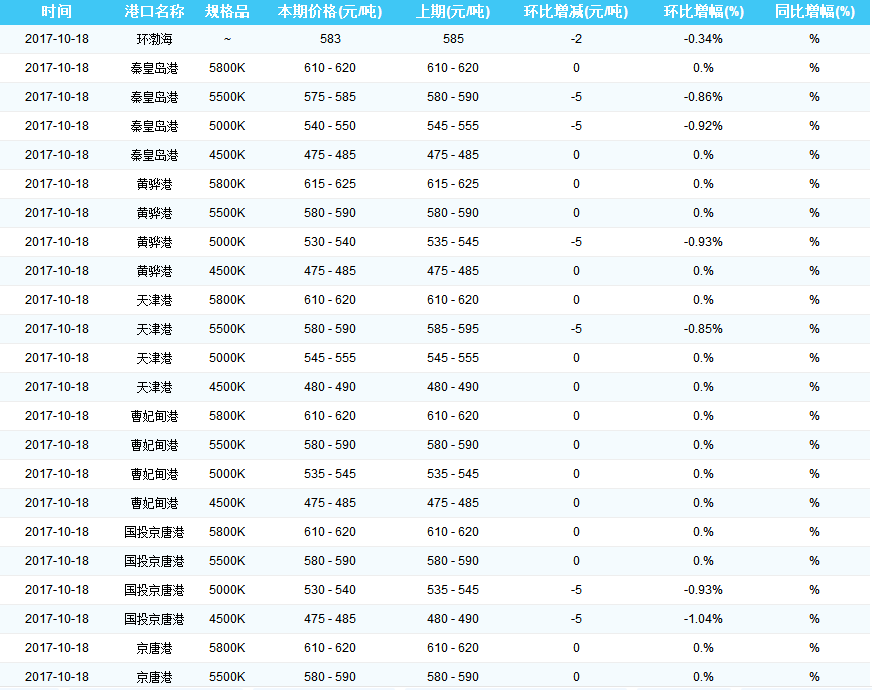 2017年10月18日环渤海动力煤价格指数