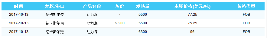 2017年10月17日海运煤炭价格指数