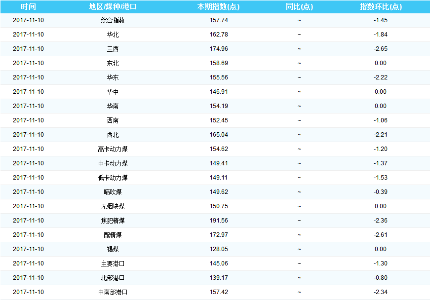 2017年11月17日中国煤炭价格指数