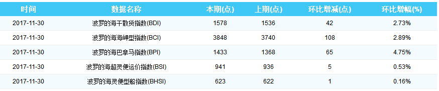 2017年11月30日国际航运指数