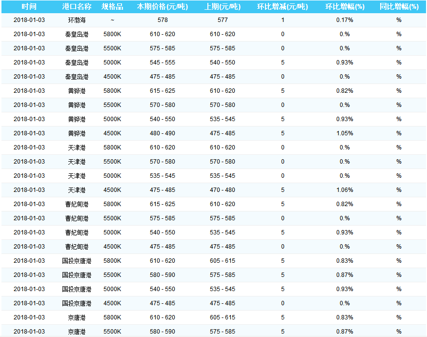 2018年1月3日环渤海动力煤价格指数