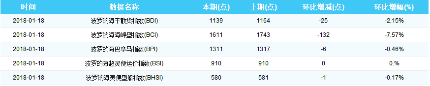 2018年1月18日国际航运指数