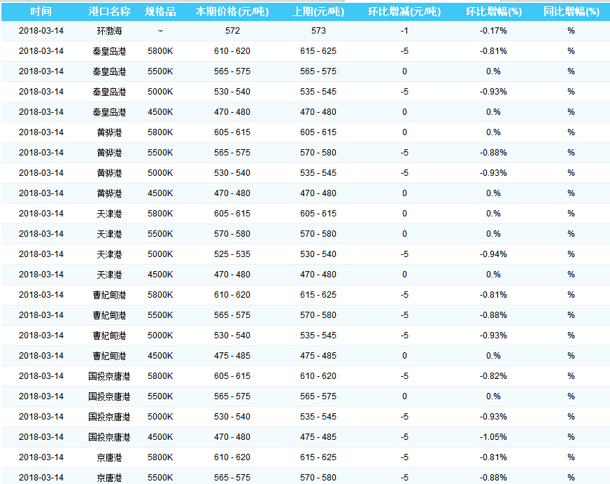 2018年3月14日环渤海动力煤价格指数