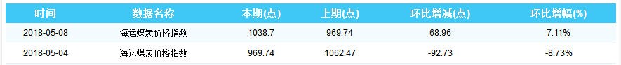 2018年5月8日海运煤炭价格指数