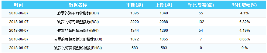 2018年6月7日国际航运指数