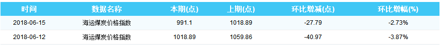 2018年6月15日海运煤炭价格指数