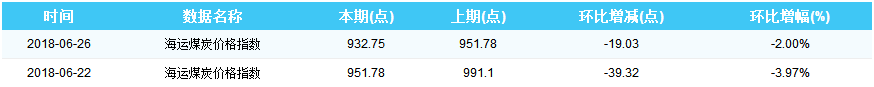 2018年6月26日海运煤炭价格指数