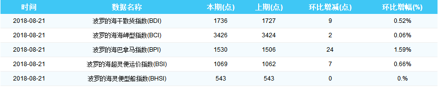 2018年8月21日国际航运指数