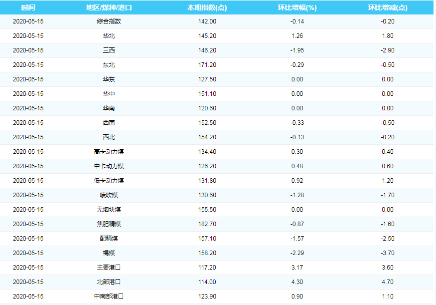 2020年5月15日中国煤炭价格指数