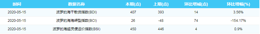 2020年5月15日国际航运指数