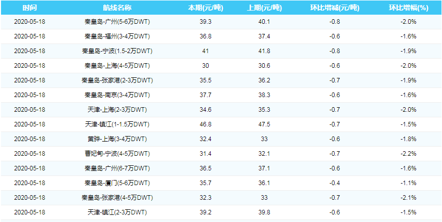 2020年5月18日沿海煤炭运费