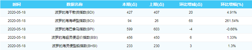 2020年5月18日国际航运指数