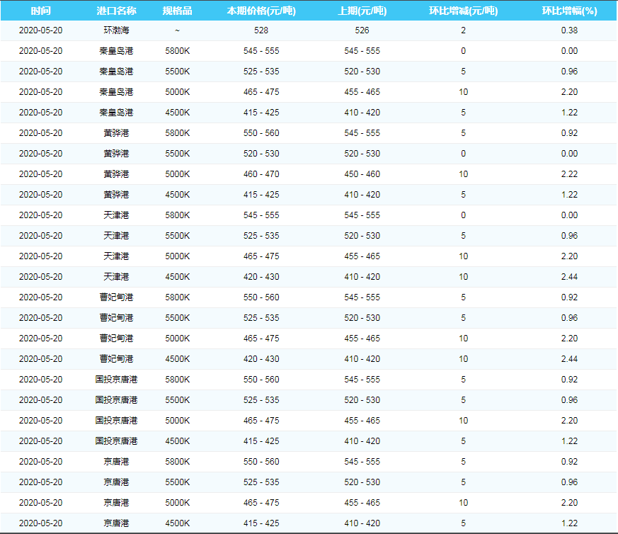 2020年5月20日沿海煤炭运费