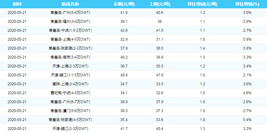 2020年5月21日沿海煤炭运费