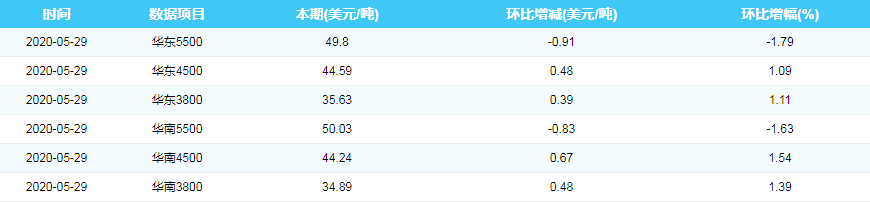 2020年5月29日进口动力煤到岸价格指数
