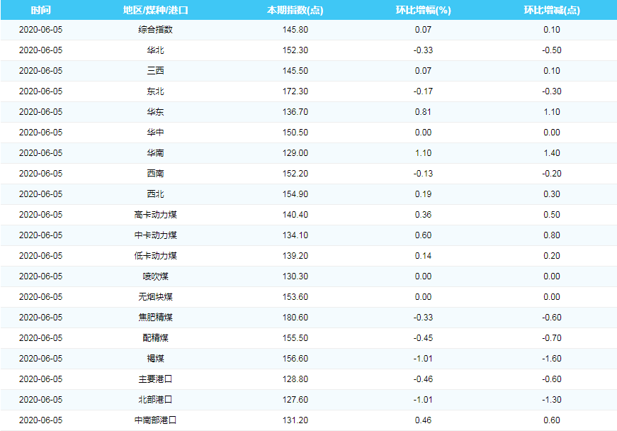 2020年6月5日中国煤炭价格指数