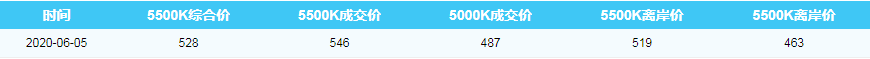 2020年6月5日进口动力煤到岸价格指数