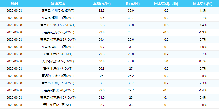 2020年6月8日沿海六大电厂煤炭供耗存指数