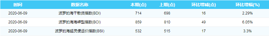 2020年6月9日国际航运指数