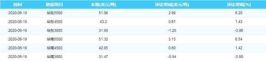 2020年6月19日进口动力煤到岸价格指数