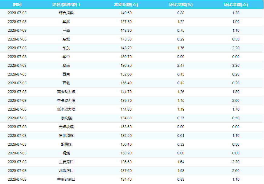 2020年7月3日中国煤炭价格指数