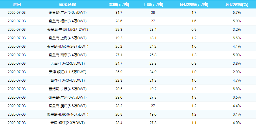2020年7月3日沿海煤炭运费