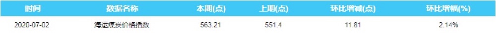 2020年7月2日海运煤炭价格指数