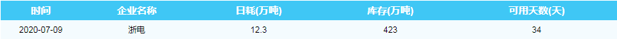 2020年7月9日沿海六大电厂煤炭供耗存指数