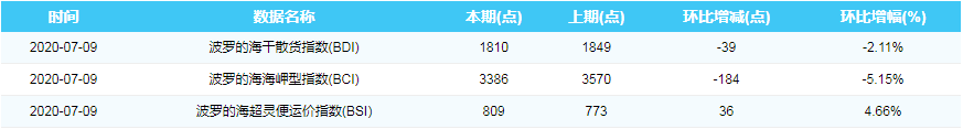 2020年7月9日国际航运指数