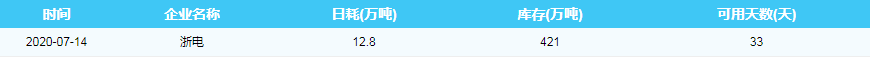 2020年7月14日沿海六大电厂煤炭供耗存指数