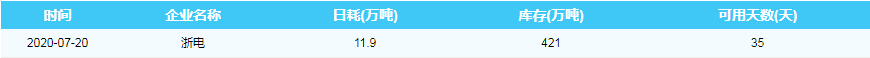 2020年7月20日沿海六大电厂煤炭供耗存指数