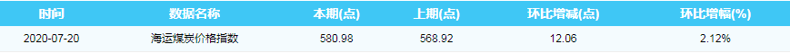 2020年7月20日海运煤炭价格指数