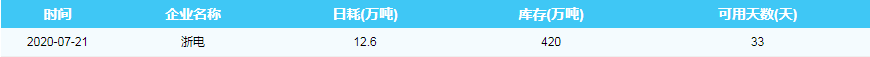 2020年7月21日沿海六大电厂煤炭供耗存指数