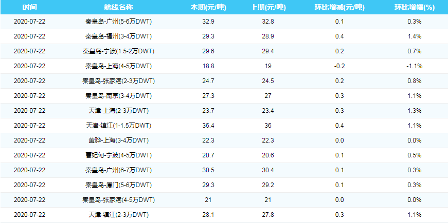 2020年7月22日沿海煤炭运费