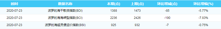 2020年7月23日国际航运指数