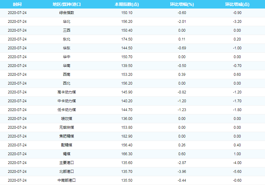2020年7月24日中国煤炭价格指数