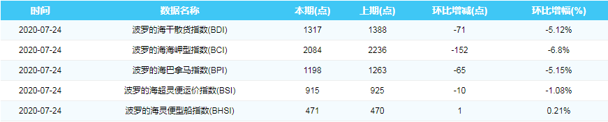 2020年7月24日国际航运指数