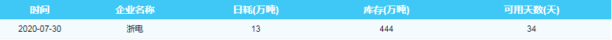 2020年7月30日沿海六大电厂煤炭供耗存指数