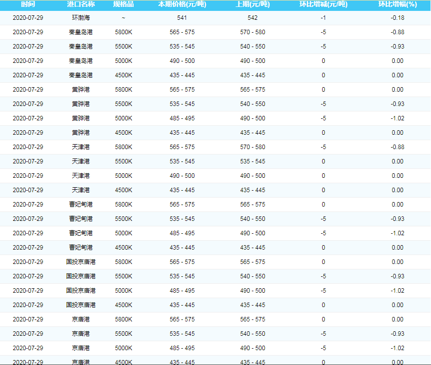 2020年7月30日环渤海动力煤现货参考价