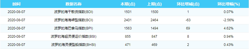 2020年8月7日国际航运指数