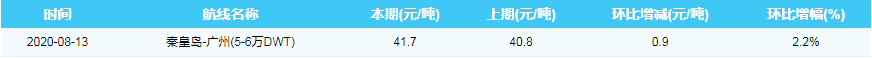 2020年8月13日沿海煤炭运费