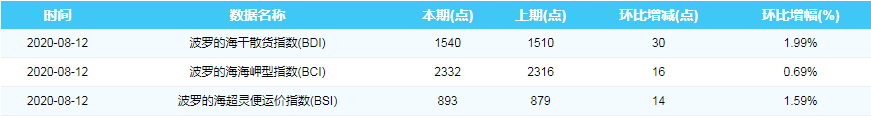 2020年8月12日国际航运指数