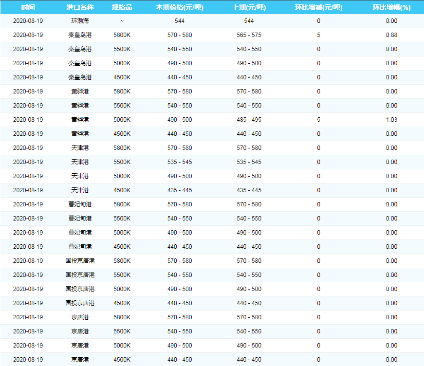 2020年8月19日中国沿海煤炭运价综合指数