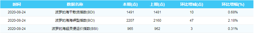 2020年8月24日国际航运指数