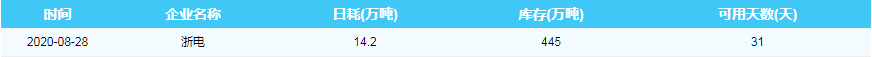 2020年8月28日沿海六大电厂煤炭供耗存指数