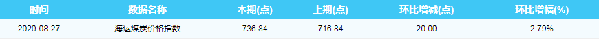 2020年8月27日海运煤炭价格指数