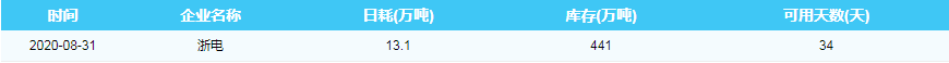 2020年8月31日沿海六大电厂煤炭供耗存指数