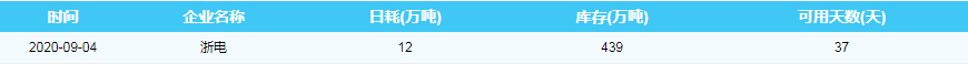 2020年9月4日沿海六大电厂煤炭供耗存指数